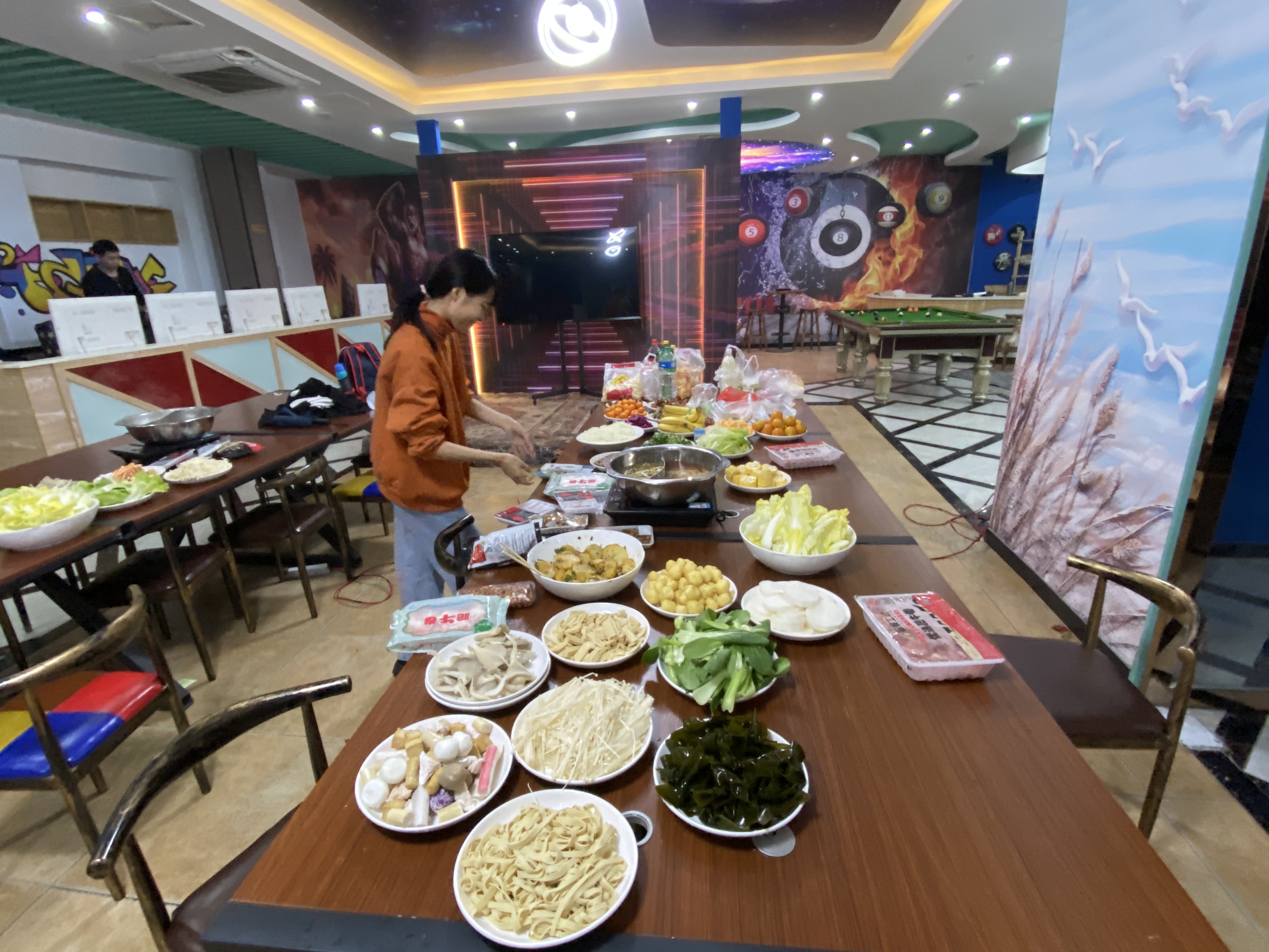 一起涮锅一起吃。