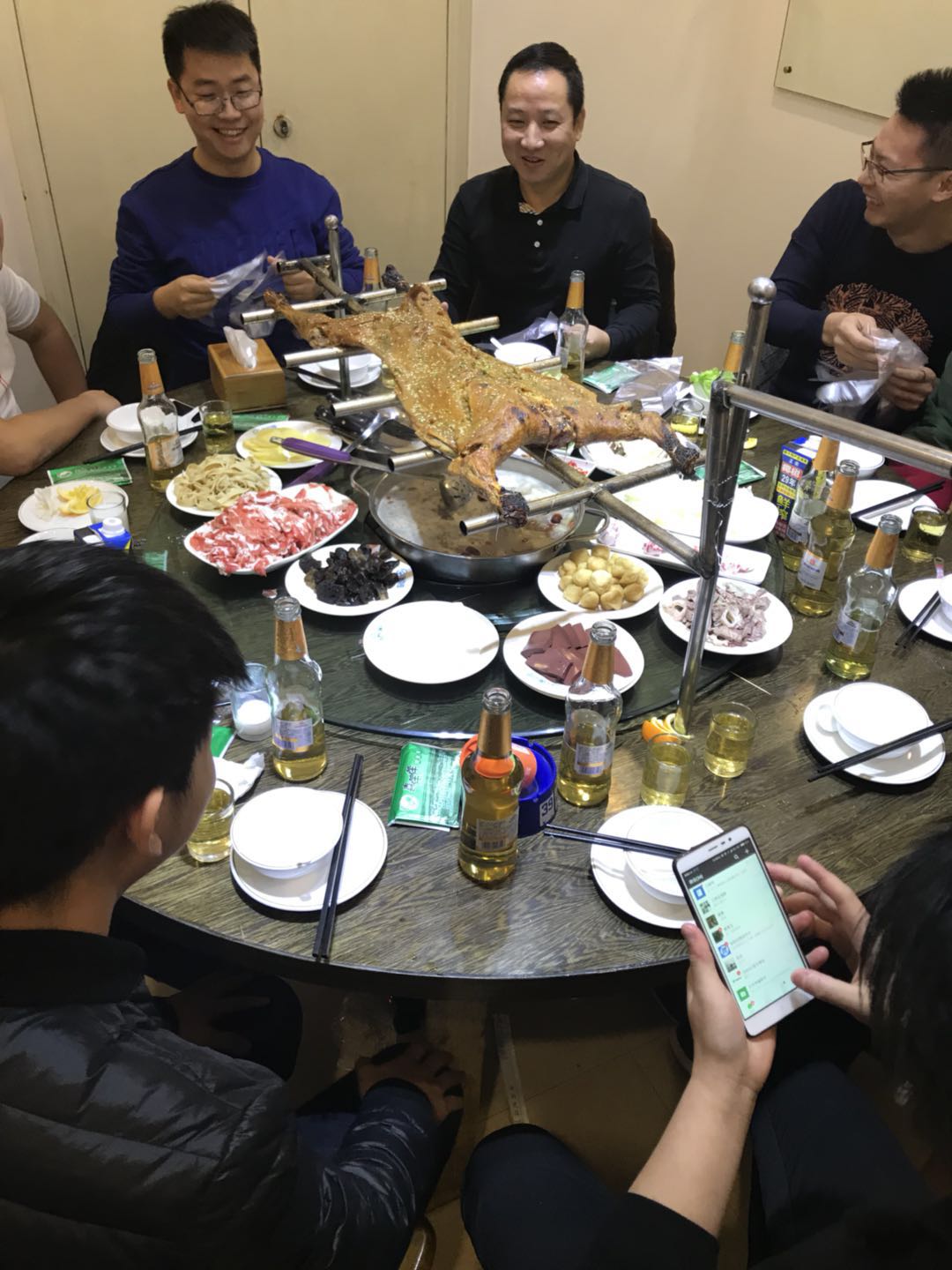 紧张的工作之余,领导也不忘记犒劳同事;由行政部门同事组织全体员工出去吃烤全羊。大口吃肉大腕喝酒的我们瞬间忘掉工作中的烦恼。